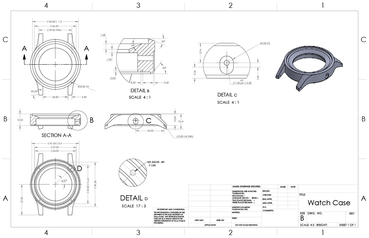 This is a CAD model of the watch with its internal components including the outer casing, movement ring, and case back. This watch is modeled based on a standard watch size of 44mm and from internal components to fit the form factor of the watch. Each and every component is designed from scratch and test fitted in SolidWorks.